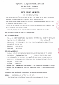 * Hợp đồng cung cấp ván ép phủ phim giữa Công ty Cổ Phần Đầu Tư Thương Mại Xây Dựng Dịch Vụ Andes và Công Ty Đầu Tư – Xây Dựng – Thương Mại – Dịch Vụ Mỹ Hạnh